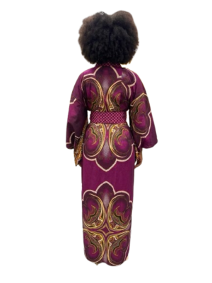 This floor-length masterpiece features dramatic bell sleeves, a waist-defining cinch, and a matching headwrap. A rhythmic celebration of the feminine form, designed for the woman who carries her culture with confidence. Pair this with the Men’s Outfit and save $60!…